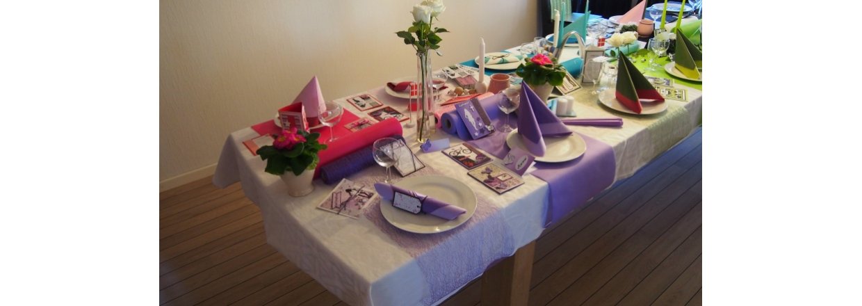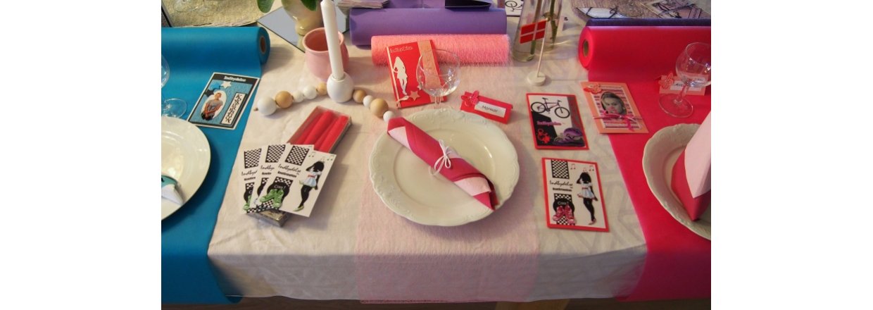 Bordet er pyntet med forslag til forskellige temaer, farver og stilarter.